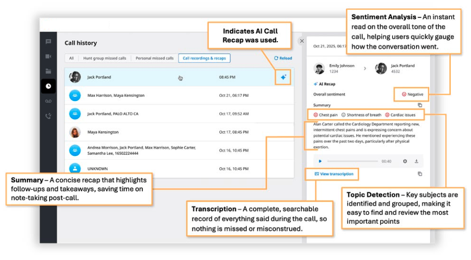 AI Call Recap delivers post-call visibility into every recorded conversation, including: